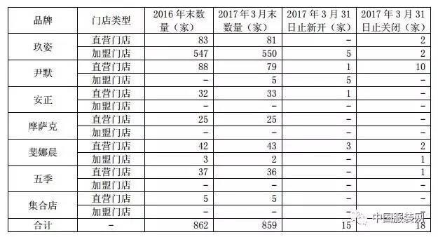 2017年一季度安正时尚开关店情况