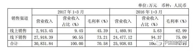 2017年一季度安正时尚线上、线下销售渠道的盈利情况
