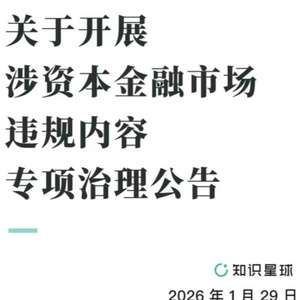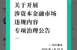 129日,付费社群应用知识星球发布《关于开展涉资本金融市场违规内容专项治理的公告》称,为积极响应并贯彻落实2026年中国证监会系统工作会议精神及国家网信办“涉资本市场网上虚假不实信息专项整治”行动要求,巩固经济回升向好态势,严厉打击各类扰乱市场秩序、侵害投资者权益的违规行为,知识星球即日起启动专项治理行动。