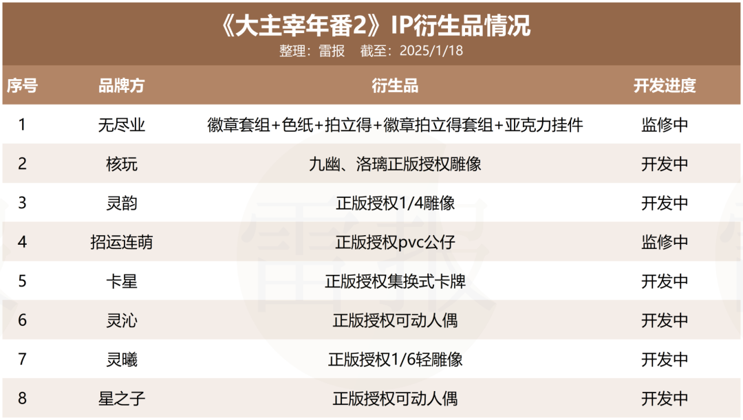 对于此类具备长期运营价值的IP,爱奇艺在项目初期即为其规划了衍生开发、故事联动与角色拓展的叙事空间。目前,《大主宰年番2》已有8个衍生品项目在筹备中。