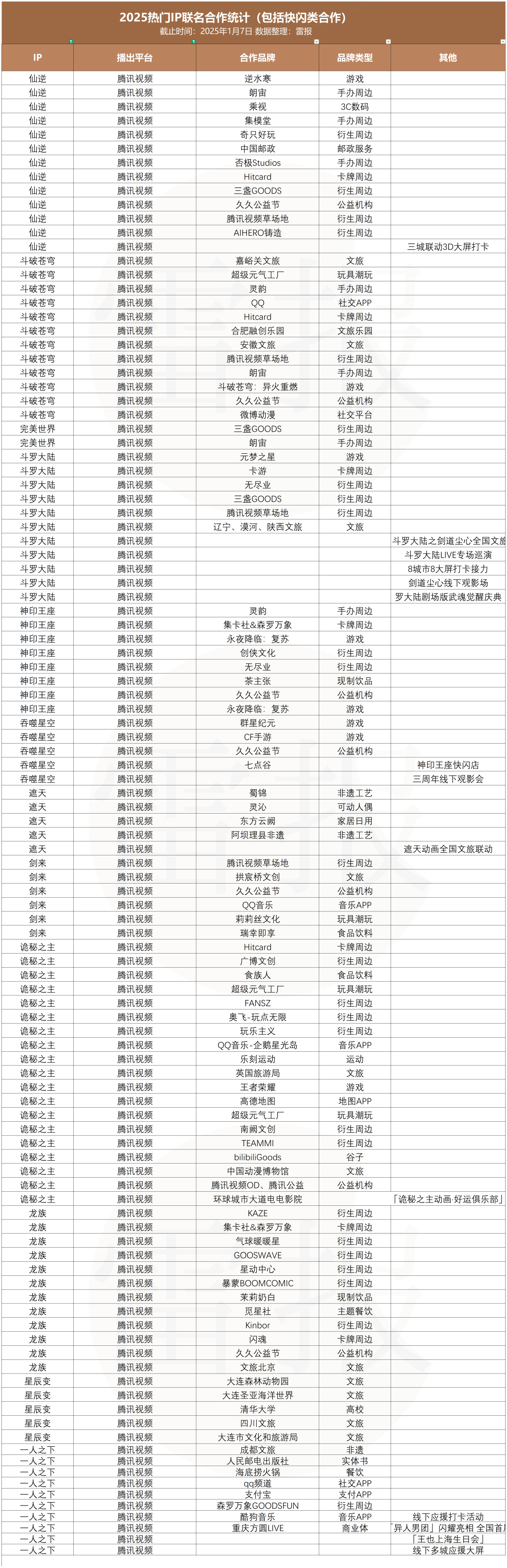 在授权联名方面,《凡人修仙传》2025年开展了近20起合作,覆盖高德地图、支付宝、minidoll玩偶、朗宙手办、豫园商城、伊利、泡泡玛特、中华彩灯大世界等个合作方,实现了从线上数字服务到线下文旅体验的全场景渗透。