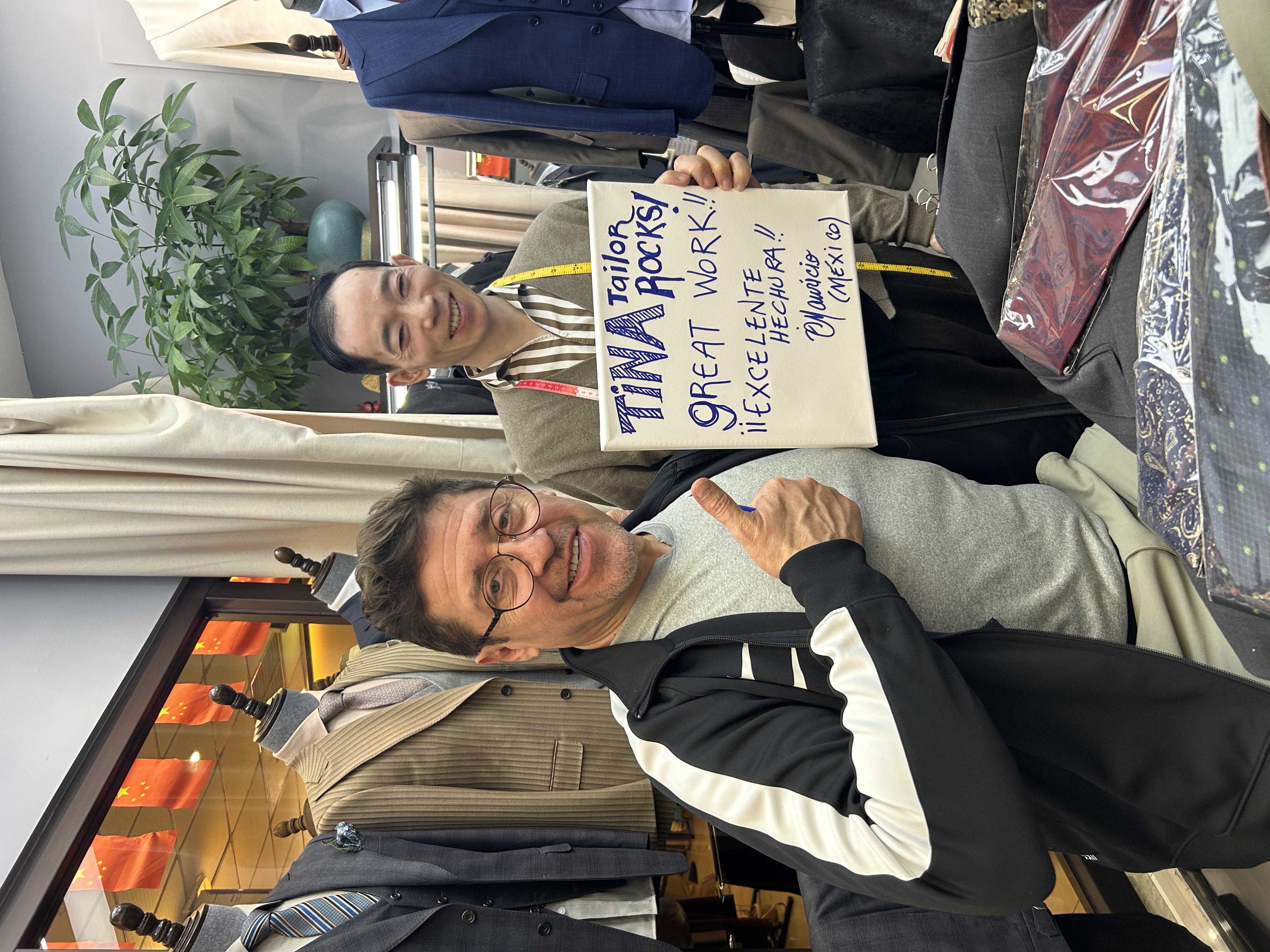 为了让更多海外客人“找到自己”,主理人们在营销层面也各自摸索路径。刘斌的店内陈列着不少海外客人留下的签名和推荐留言,并在门口悬挂了“海外版大众点评” Tripadvisor 的标识,方便外国客人通过海外社媒检索门店评价。陈丹则习惯在成衣交付后与客人合影,邀请对方在社交媒体上标注门店名称并留下体验反馈。这种方式带来了不少来自熟客推荐的新订单,也逐渐形成了稳定的客源循环。