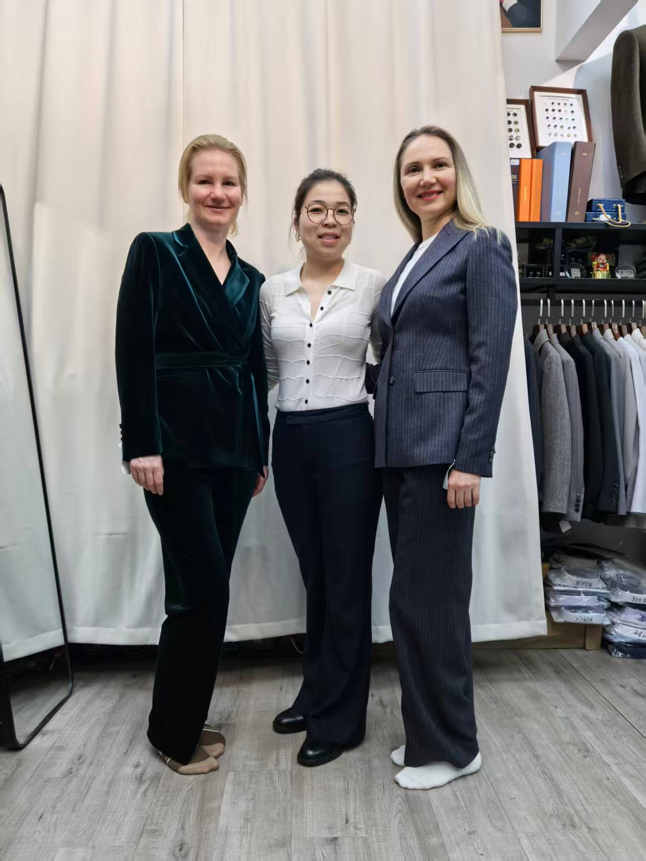 刘斌表示,为应对部分海外客人停留时间较短的情况,店内长期保留加急定制能力,整套西装在条件允许时可于两天内完成。这一效率建立在十余名资深裁缝组成的自有团队之上,裁剪、制作与修改均在上海完成;同时,对于企业客户的大批量定制需求,也可由其位于上海周边的工厂承接。