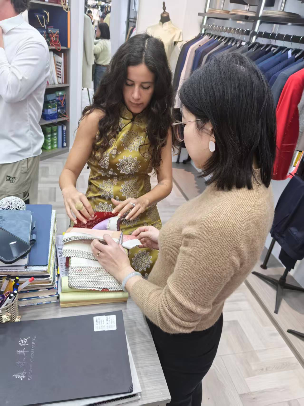 陈丹也提到,近一年里,外国客人的增加与免签政策变化有明显关系。她感觉到,来店里咨询、下单的外国客人变多了。其中不少是行程较短的访客,“有些人就来上海几天,但会专门抽时间来做衣服”。她说。