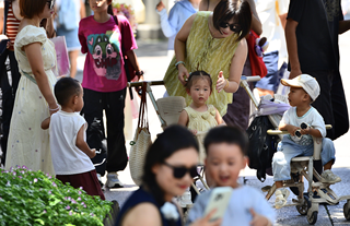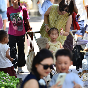 2025年7月29日,福建福州,家长带着小孩出行。 图片来源:CFP