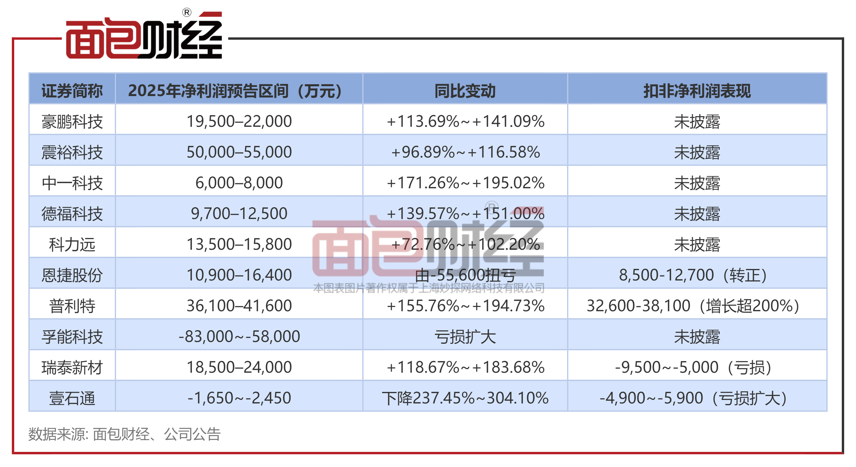 其中,恩捷股份预计2025年净利润约1.09亿元-1.64亿元,同比扭亏。公司表示2025年三季度以来,锂电池隔离膜行业下游需求持续增长,公司全力保障下游客户对优质隔膜稳定供应的需求,隔膜产品销量稳步增长;同时,受益于行业供需格局改善,隔膜产品价格逐步企稳,部分产品价格回升。2025年以来特别是2025年四季度公司主要产品销量增长、价格企稳,毛利率实现提升,叠加报告期内公司收到部分政府补助,本报告期盈利较上期显著改善,实现扭亏为盈。