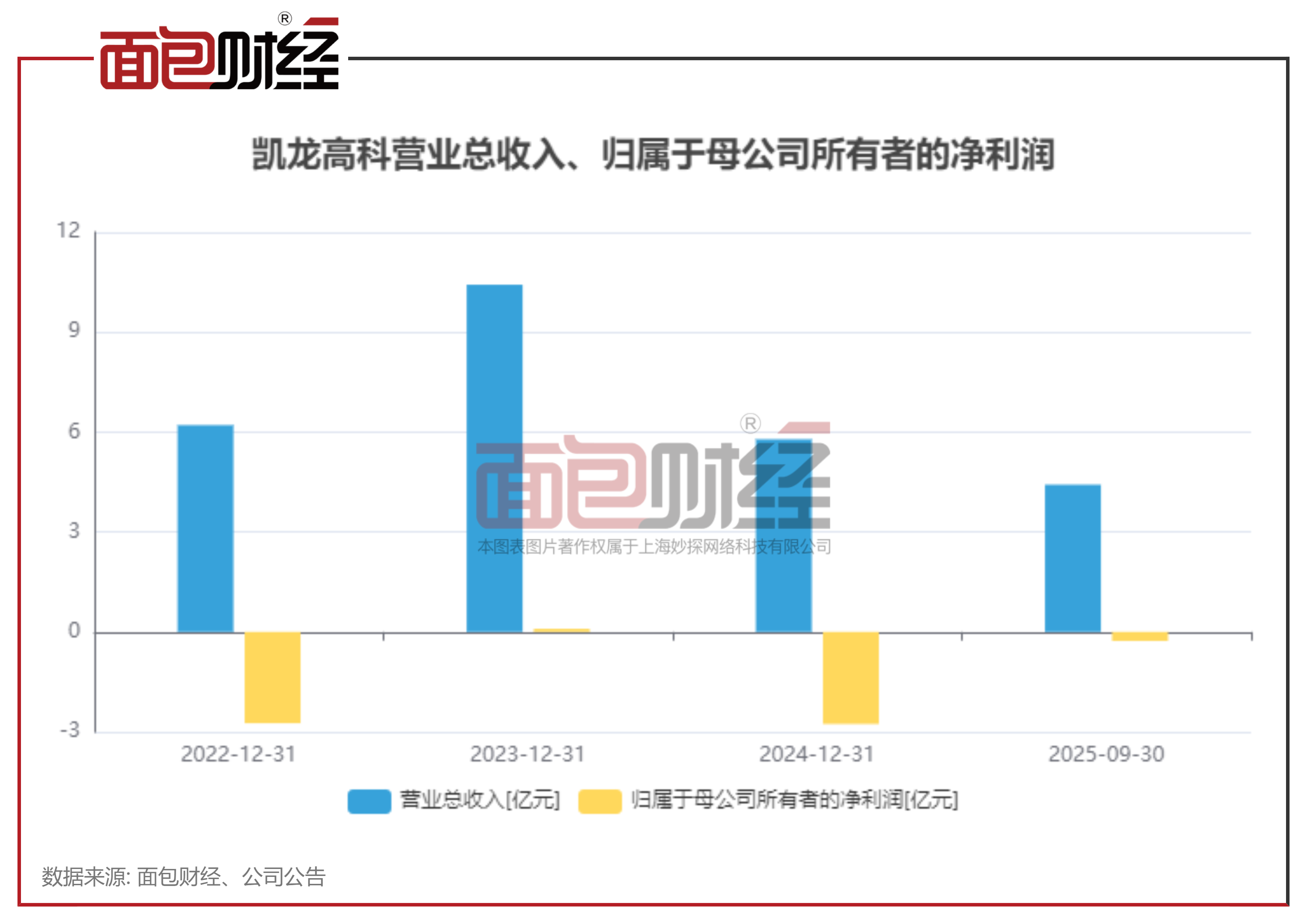 2025年前三季度,凯龙高科实现营业收入4.42亿元,同比下降4.7%;归母净利润-2708.2万元,同比亏损规模收窄76.7%。