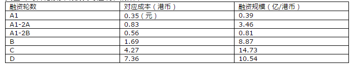 美图公司总共进行了四轮融资:2014年1月进行了A轮融资,包括A1轮,和A-2A,A-2B轮。按照港元兑美元7.75的标准计算,现在A1轮的成本只有0.35港元,A-2A轮对应的成本0.83港元,A-2B的成本0.56港元。李开复的创新工厂投了A1轮和A2A轮,平均成本0.42456港元。