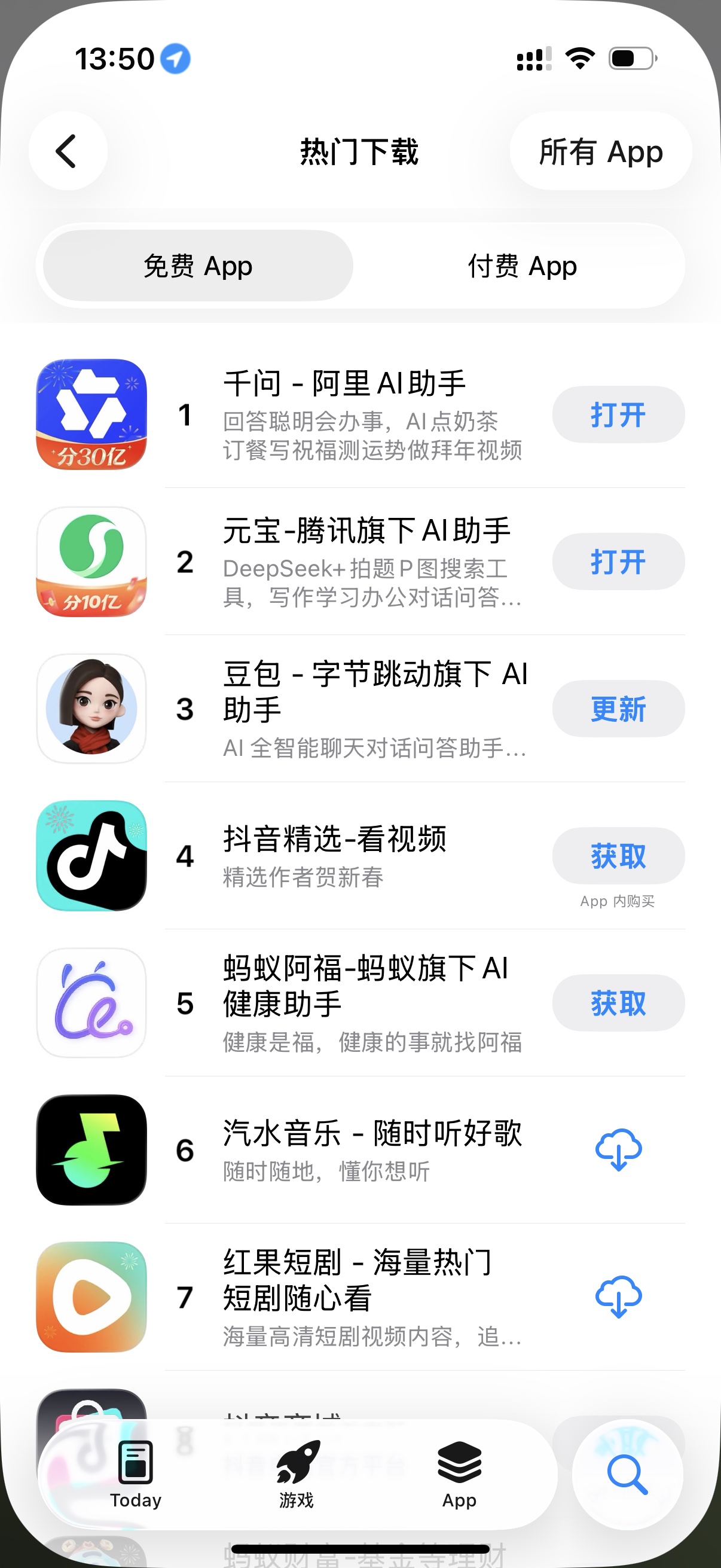 千问登顶App Store免费榜