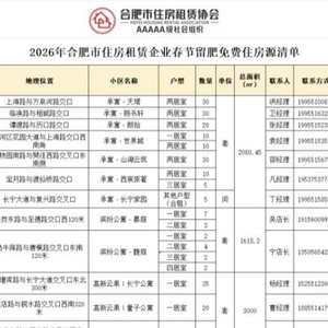 2026年春节将至,合肥市住房租赁协会再次发出“留肥过年 暖寓相伴”公益活动倡议,让因工作留守合肥、保障城市运转的一线建设者和管理者们度过一个安心、舒心的新年。倡议发布后,合肥市多家住房租赁企业积极响应,截至2月4日17时,已有18家住房租赁企业踊跃报名参与此次活动,累计提供了440套/间、总面积超过1.77万平方米的公益房源,覆盖合肥各县区。