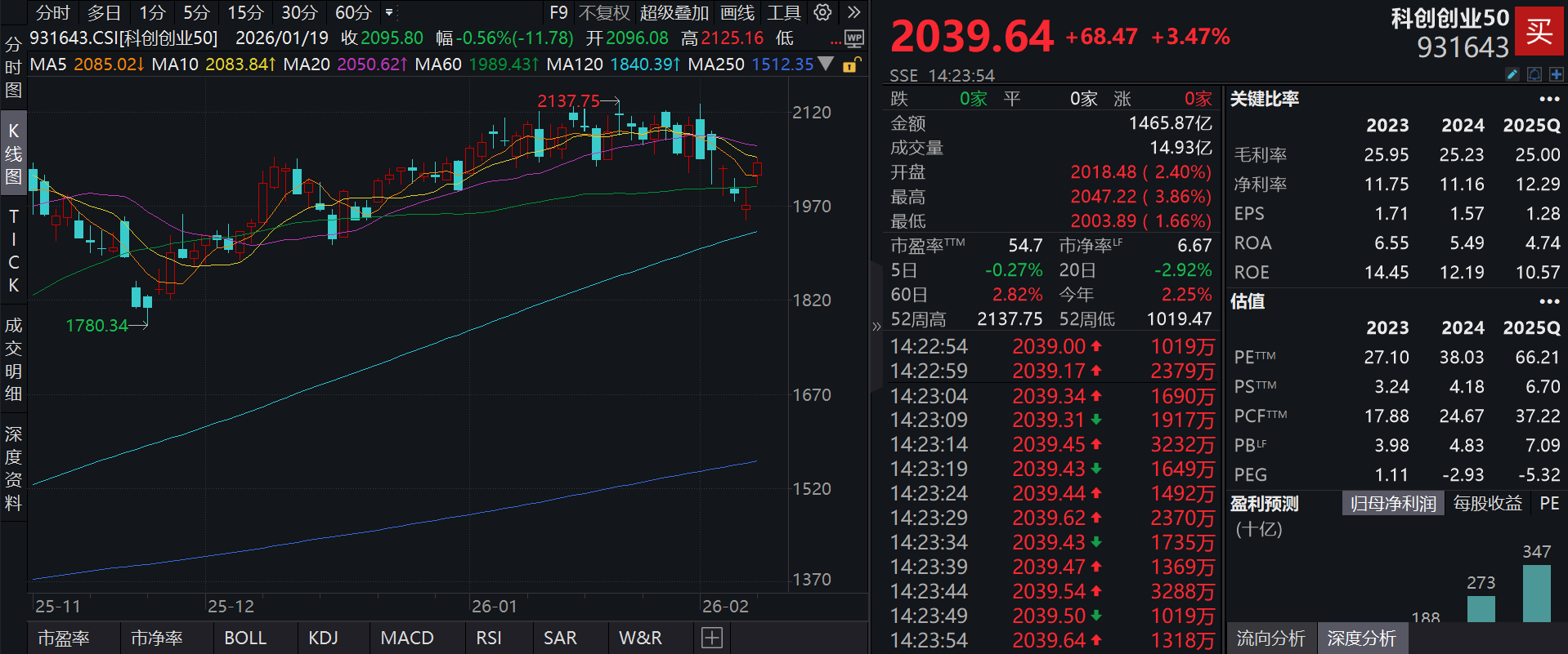 截至2026年2月9日 14:23,科创创业50指数(931643)强势上涨3.47%,成分股天孚通信(300394)上涨17.21%,芯原股份(688521)上涨14.96%,晶合集成(688249)上涨7.73%,三环集团(300408),新易盛(300502)等个股跟涨。