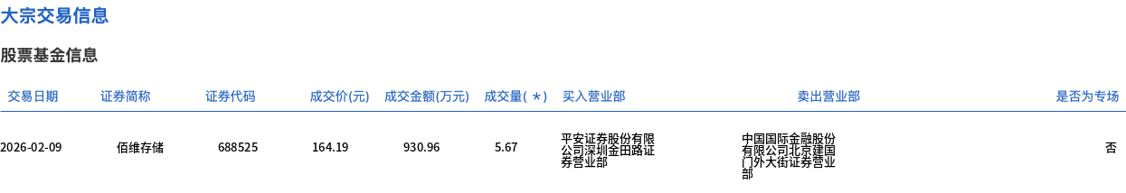 2月9日,佰维存储大宗交易成交5.67万股,成交额930.96万元,占当日总成交额的0.32%,成交价164.19元,较市场收盘价164.19元持平。