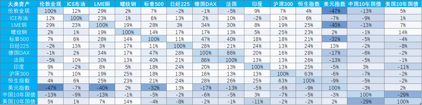 表:黄金资产与其他大类资产的相关性