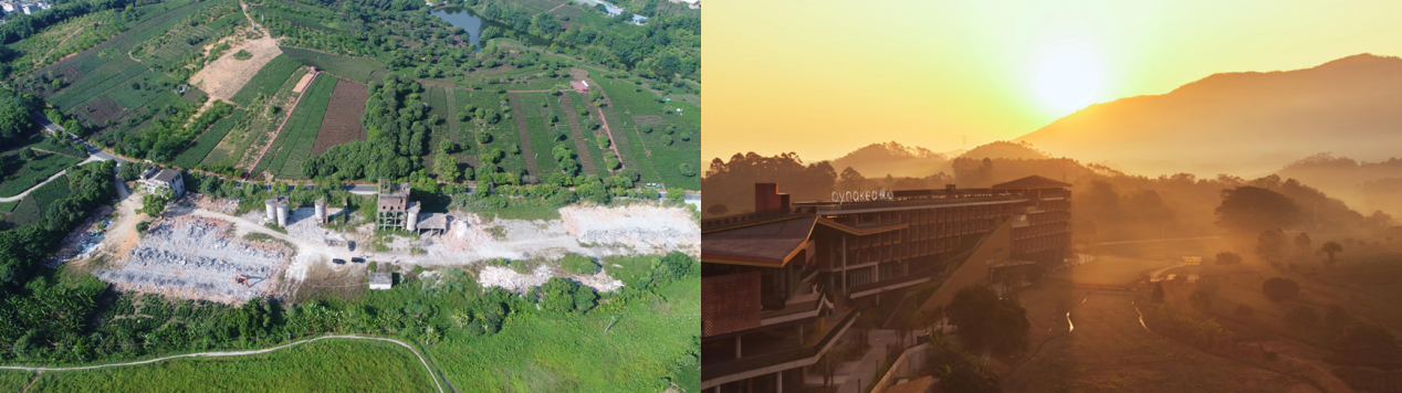 该项目以柏塘原有水泥厂建筑为基础实施改造,在充分尊重建筑结构与肌理的前提下,引入符合区域定位的度假功能。项目在规划与建设过程中注重延续场地记忆,推动存量空间的高效利用。
