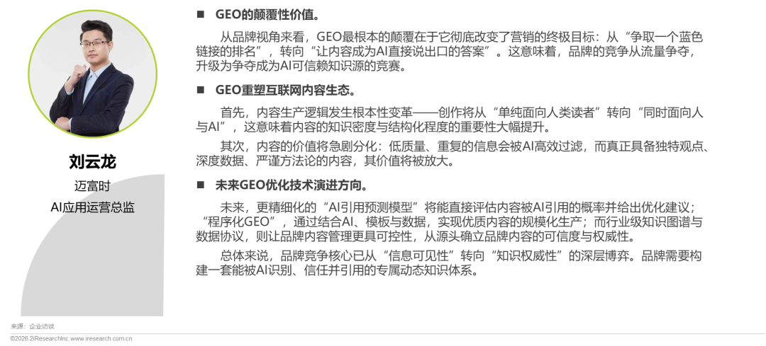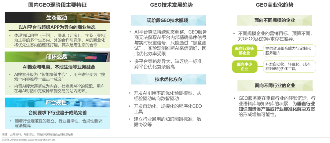 无论是技术升级还是商业模式优化,GEO的发展方向强烈依赖AI生态的商业化与AI平台的战略,行业整体遵循生态驱动与合规性的特征