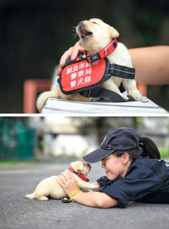 其实,小家伙们还是实习生,培养警犬的过程十分漫长,台湾警察署决定在警犬宝宝刚进队训练时拍些照片,留下它们最可爱的瞬间。