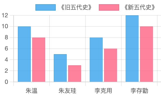 图说:识典古籍的深度研究助手绘制,后梁核心人物在古籍中出现频率柱状图
