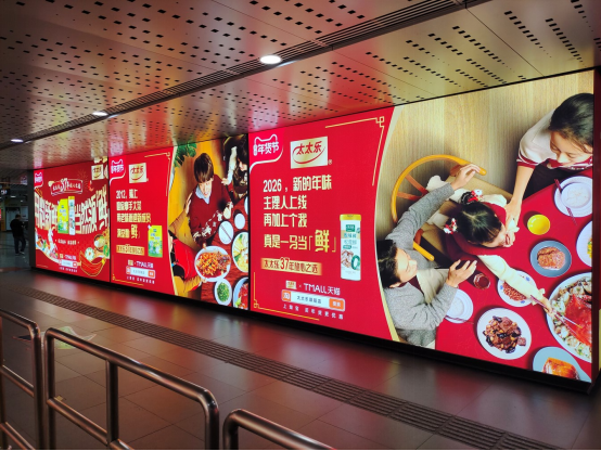 春节,是中国人最重视的团圆时刻,也是品牌与消费者建立情感连接的绝佳场域。太太乐以“乐享新年,鲜享团圆”为主题,编织了一张覆盖线上线下的温暖网络。从1月21日至2月24日,小米、海信智能电视的开机广告将“鲜”的故事带入亿万家庭;在上海、成都、广州、杭州、南京的地铁站台,在全国六大区域39座城市的商圈,太太乐的身影融入归乡人潮,陪伴用户的每一段旅程。