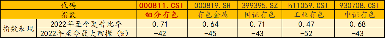 3、收益率表现更优:2022年至今,有色ETF汇添富(159652)标的指数夏普比率同类领先,且最大回撤同类更低,投资体验更好。
