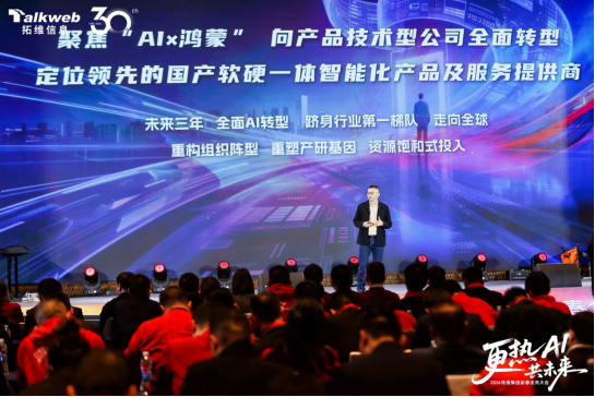 2月8日,拓维信息在长沙召开2026年新春全员大会。值此企业成立三十周年的重要节点,拓维信息创始人、董事长李新宇以“更热AI 共未来”为主题发表演讲,正式发布了企业未来三年的战略规划:坚持“领先的国产软硬一体智能化产品及服务提供商”定位,聚焦“AI×鸿蒙”全力加大研发投入、拥抱AI原生一代,向产品技术型公司全面转型,抢占“AI×鸿蒙+行业”历史性机遇。