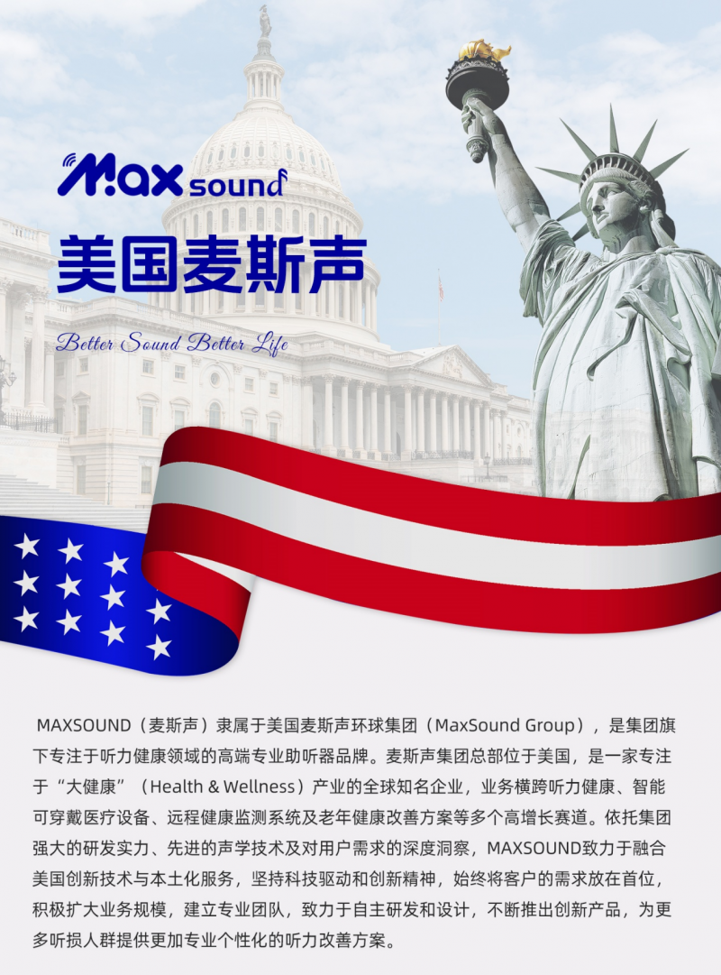 从技术研发到产品落地,从标准制定到服务升级,麦斯声MaxSound始终以“让每一位听损人群都能重获高品质聆听体验,拥抱精彩生活”为使命,将技术创新与人文关怀贯穿于品牌发展的全链路。在老龄化社会来临、听力健康需求日益增长的当下,麦斯声以八大核心维度技术为支撑,以清晰度优化技术为突破,不断推动听力健康领域的技术革新与产品升级,为全球听损人群打造出连接世界的清晰桥梁。