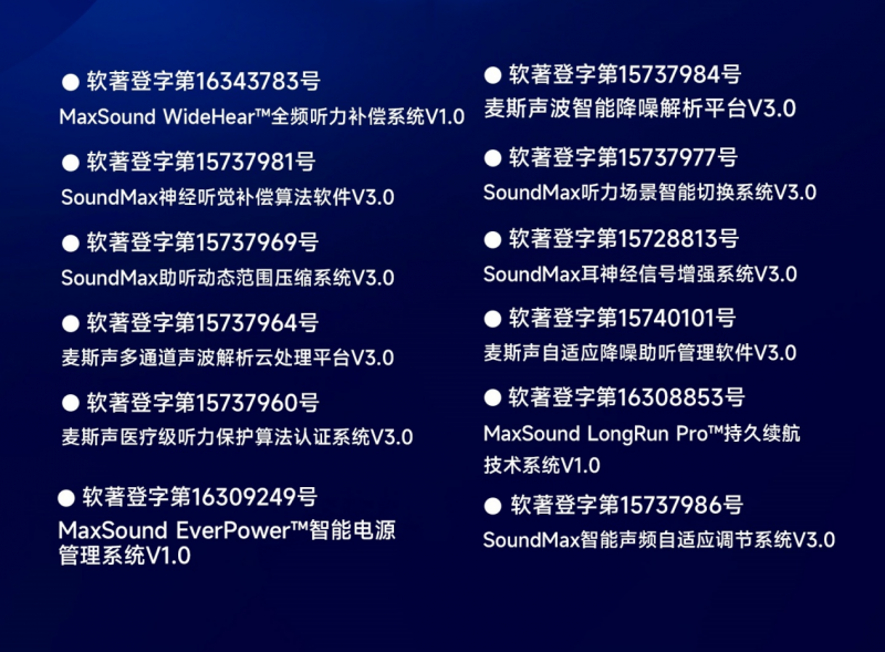 清晰度优化核心技术,构成了麦斯声MaxSound在听觉清晰度领域的技术壁垒,而这一核心技术的落地,离不开品牌八大核心维度技术体系的协同支撑。麦斯声深知,优质的听力体验并非单一技术的成果,而是多维度技术的协同发力,因此构建起覆盖降噪、增强、补偿、清晰度、场景切换、多通道、听力保护、持久续航的完整技术矩阵,八大维度技术相互赋能、协同增效,为用户打造全场景、全周期、高品质的听力健康服务。