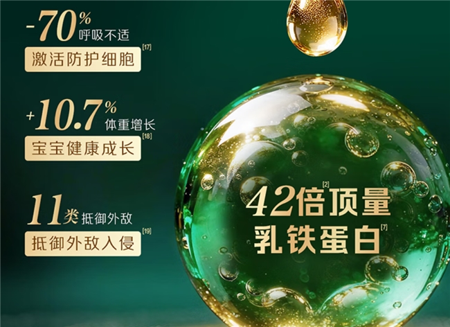 一、顶奢保护力:42倍高量乳铁蛋白+9大HMO,构建宝宝免疫“黄金盾牌”