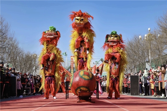 念坛公园市集(2月11日,腊月二十四)里,麒麟舞的灵动舞姿与京剧脸谱制作的色彩碰撞相映成趣,家长带着孩子一笔一画勾勒脸谱;梨花村(2月12日,腊月二十五)与采育文化广场(2月13日,腊月二十六)的高跷表演一亮相便聚拢大批村民,艺人踩着高跷时而跳跃、时而旋转,孩子们在围栏外追着队伍欢呼,老人们坐在路边拍手叫好,非遗表演成为连接邻里的“年味纽带”;龙湖天街与魏善庄镇世界月季主题园(2月14日,腊月二十七)的舞狮表演更是点燃商圈与景区活力,红狮腾跃、金狮献瑞,市民纷纷驻足拍照打卡,朋友圈瞬间刷屏,让非遗热度持续攀升。