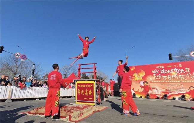 天宫院街道第二届年货市集(2月11日—13日,腊月二十四至二十六)以“非遗+年货”双核心引爆热度,大兴区级非遗大黑垡中幡大鼓震撼开场,艺人挥舞十米中幡做出“海底捞月”等惊险动作,引得观众齐声惊呼;京津冀联动,非遗邵氏高跷踩着欢快节奏跳跃翻转,小车会演员身着彩衣诙谐互动,舞台上下欢声笑语不断。手工体验区同样人气爆棚,掐丝珐琅的流光溢彩、糖画的晶莹剔透、拨浪鼓制作的童趣盎然,让男女老少沉浸式解锁非遗技艺,不少家庭全家上阵“一站式打卡”,更有市民笑着说:“三天连来两场,孩子迷上了非遗,既热闹又有意义,这才是春节该有的样子!”