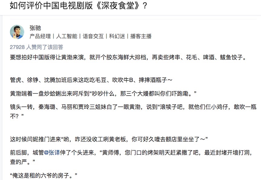 知乎上关于这部剧的讨论其实蛮值得一看,《舌尖上的中国》已经给我们真正的深夜食堂做出了一个高度概括:大排档才是中国人凌晨的最佳秘境。