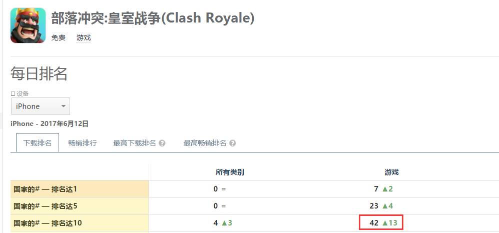 2v2的设置能够增强《皇室战争》的社交属性不难理解。以往的1v1模式时,想要和朋友对战,玩家只能和朋友进入同一个部落进行友谊赛,而现在则可以邀请朋友组队出战。部落战也改为2v2这种常驻的玩法,游戏页可以通过玩家的链接分享到社交平台,获取好友,合作对战。这种带着增强社交属性的设置一般都能重新拉回老玩家并导入一些新玩家。而且2V2模式中,无论输赢都不会掉奖杯,但是赢了却能拿到开宝箱的皇冠。从榜单数据变化来看确实起到一定作用,《皇室战争》在全球42个市场进入了App Store下载榜TOP10。