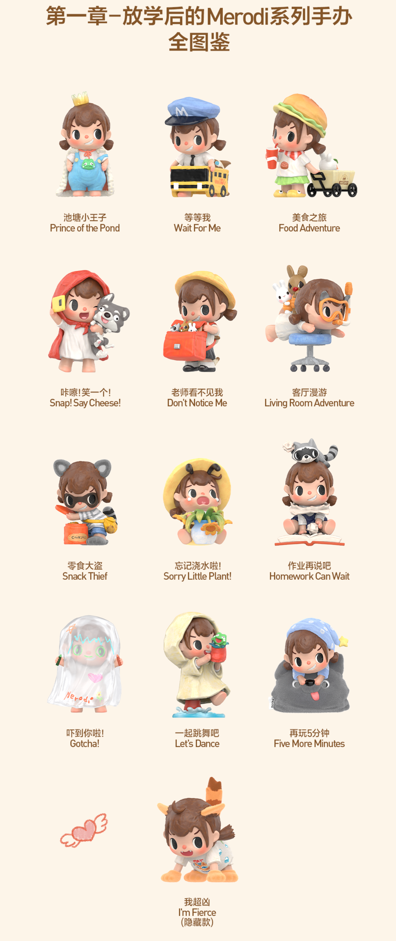 2月20日,泡泡玛特官宣新IP——放学后的Merodi,系列手办含12个常规款、1个隐藏款,常规款概率是1:12,隐藏款概率是1:144。该系列单个盲盒售价为69元,整盒售价为828元。线上发售时间为2026年2月26日22:00,线下发售时间为2026年2月27日。