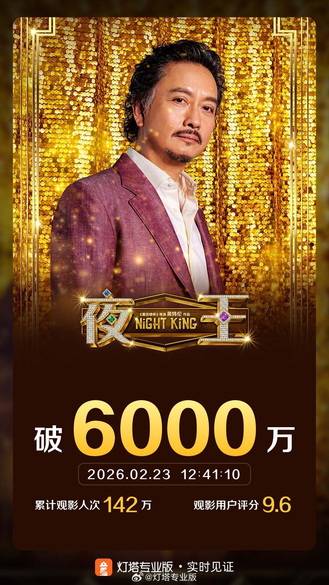 据灯塔专业版实时数据,截至2月23日12时41分,影片《夜王》票房突破6000万。