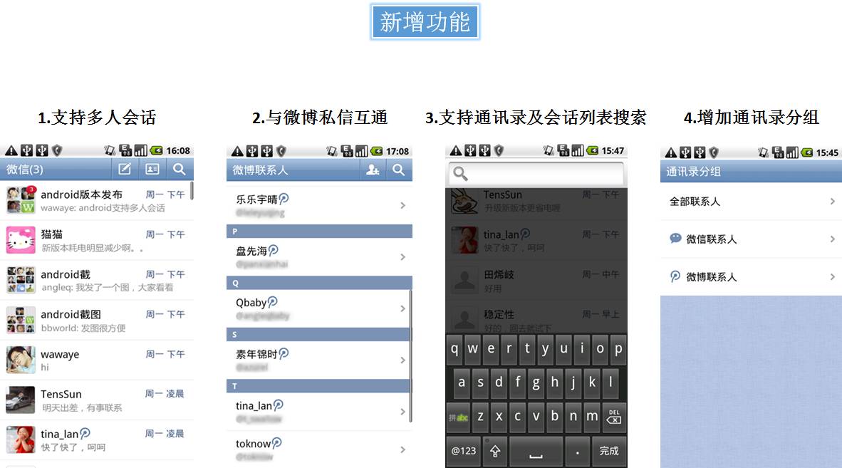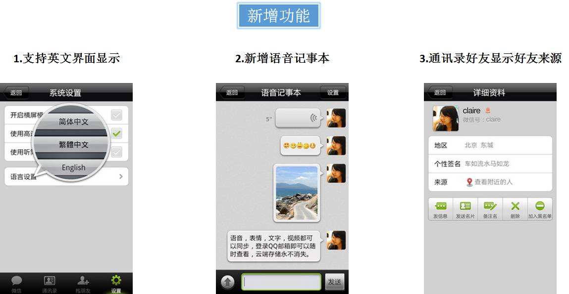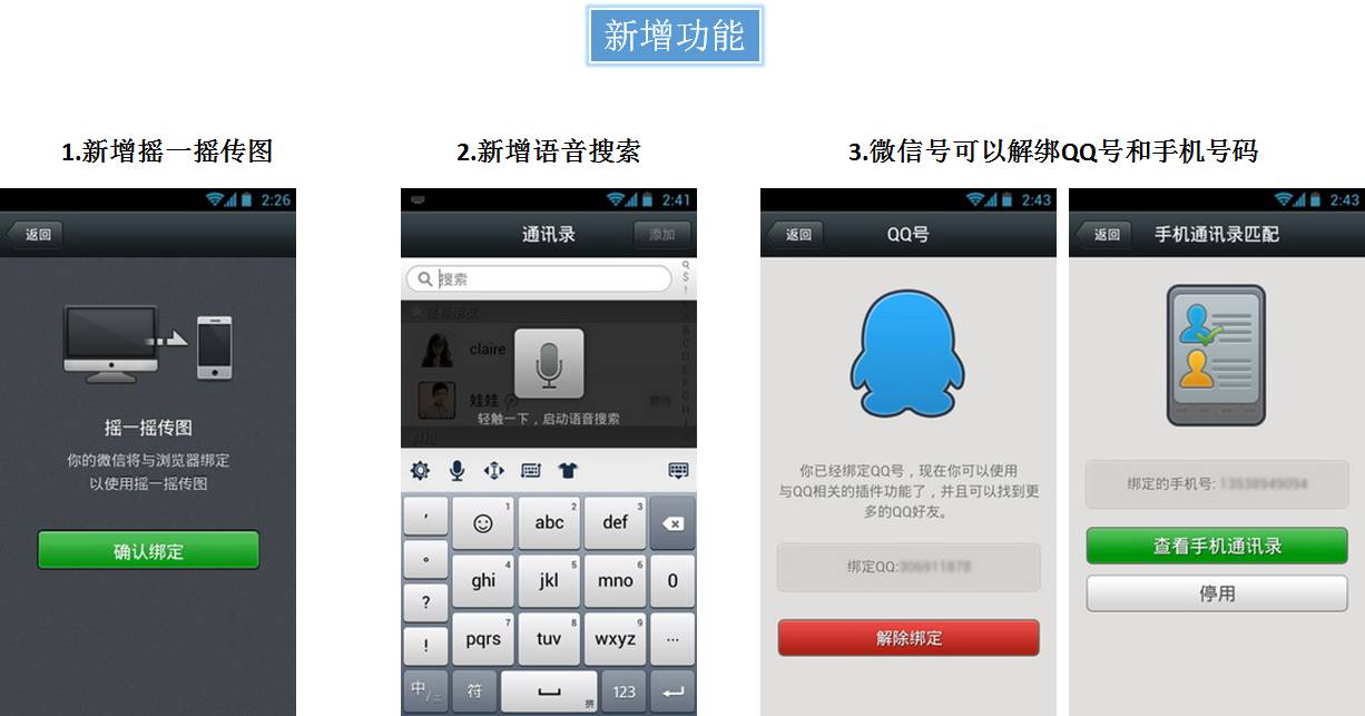 总的来说,微信2.2-2.5的版本主要还是围绕提升用户增量来做功能。