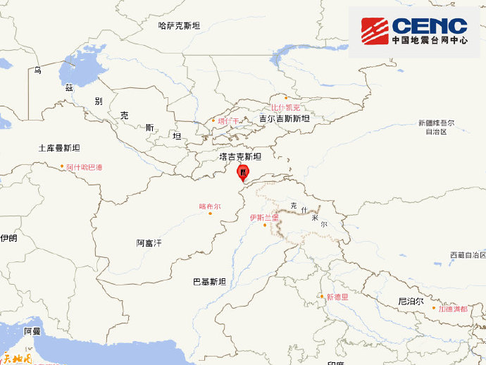 阿富汗发生5.1级地震,震源深度100千米