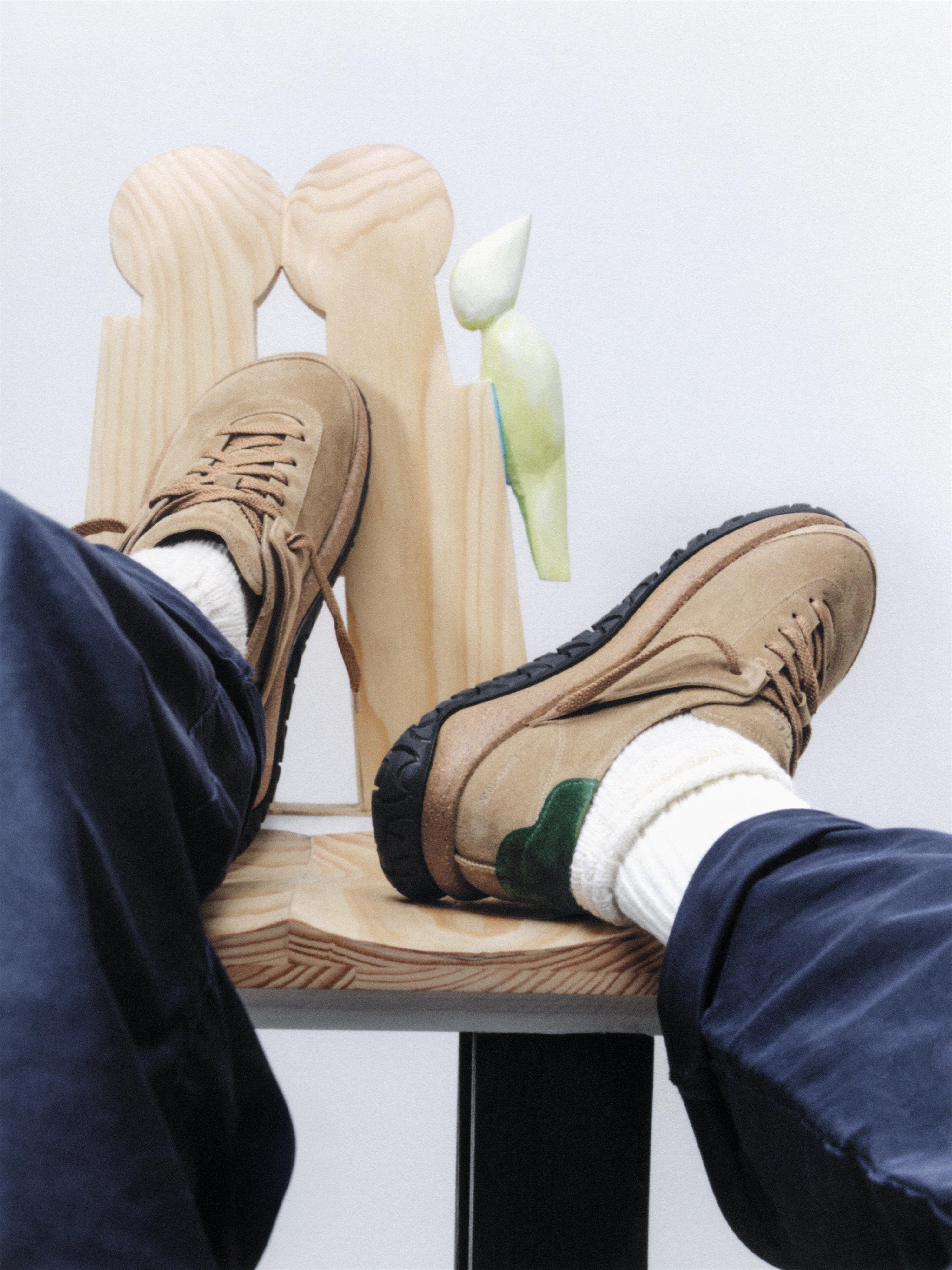 Stroedt 低帮系带鞋款首发采用皮革材质亮相,此次推出麂皮版本,并提供栗红色与沙色两种选择,赋予更具柔软触感的表达。