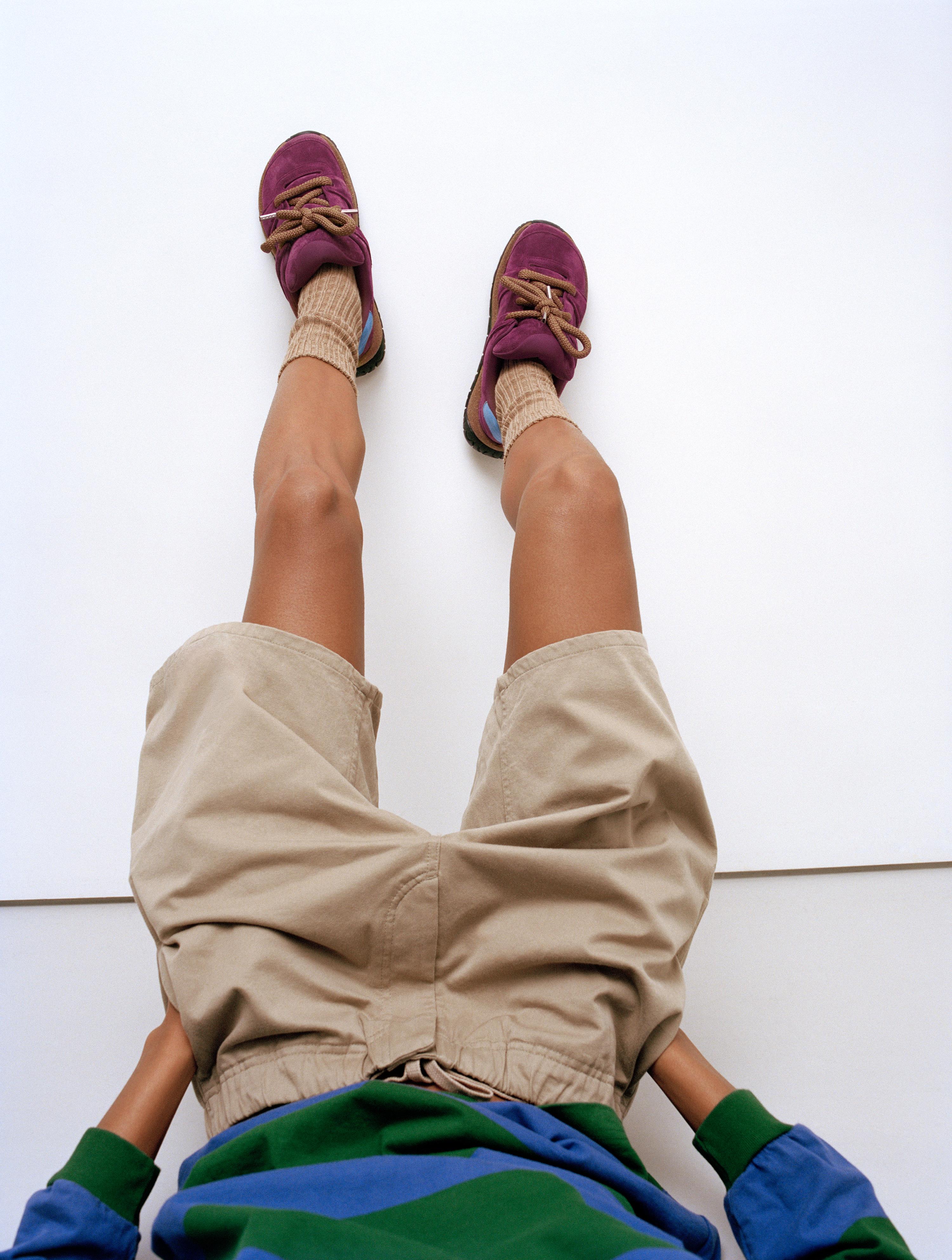 Goerlitz 鞋款以夸张比例与双层鞋面束带结构为特色,此次选用麂皮材质呈现波尔多红与沙色两种配色,突显其具有层次感的构造又沉稳气质。