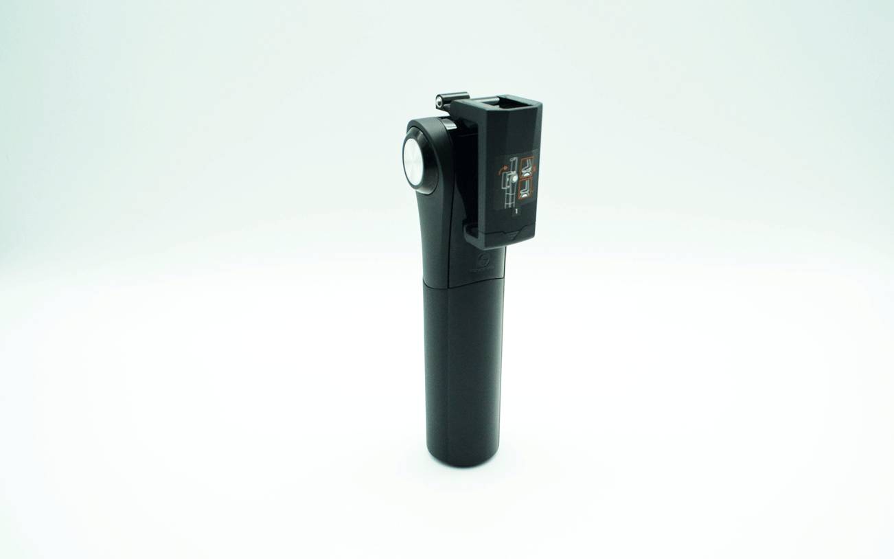 下面拉伸出来的这一块就是俯仰轴稳定器啦。它的原理其实就是内置高精度陀螺仪于加速度传感器,实时检测手机的空间位置,分别对空间中的三个方向进行角度补偿,让手机始终保持平衡的姿态,拍摄出稳定流畅的画面。