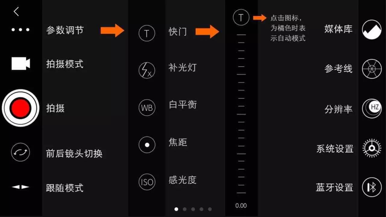 它可以搭配APP使用,也可以单独使用,不用APP的话,就只能切换三种不同的跟随模式;而搭配“随拍”APP使用的话,则可以使用一些更专业的设置。