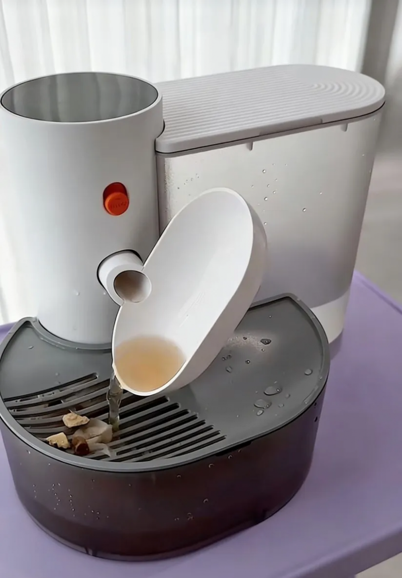 那款爆火的宠物饮水机就是典型案例。传统的过滤循环式饮水机把水反复抽上来经过滤芯再流回水盆, PetGravity 打破了行业同类商品“必带滤芯”的惯例,首创了“单向不循环”结构,把“净水、饮用水、污水”分开处理 —— 喝剩的水会被自动倾倒,不再回流循环,用新的水重新补充。