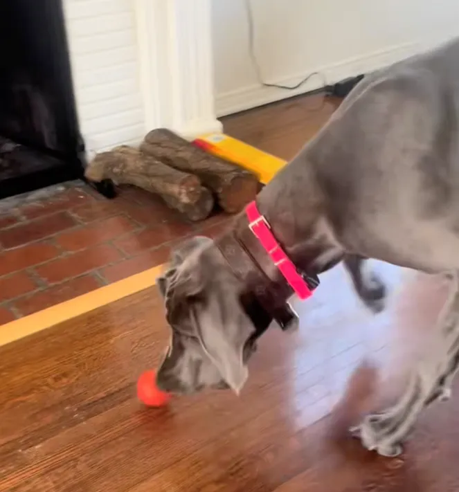 美国消费者展示,自家宠物犬痴迷于玩PetGravity的 “ 跳跳球 ”