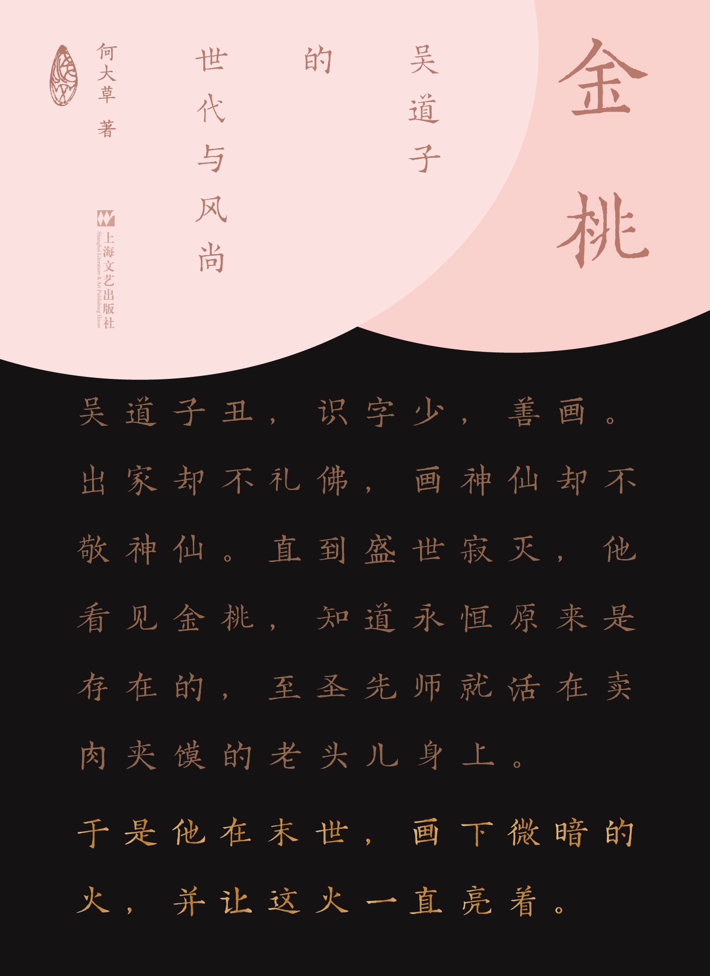 2023年,何大草完成《金桃:吴道子的世代与风尚》,他描写吴道子沉默寡言,粗蛮能吃苦,从穷人家的孩子升迁至“画圣”,何大草由吴道子的眼光看遍盛唐名士和时代跌宕,同时落点于他和儒生颜季明的忘年之交,后者被安史乱军斩首。吴道子画下颜季明敬重的圣人孔子,就是出于怀念自己故去的好友。在何大草看来,这是吴道子沉默个性之外的天才与深情。
