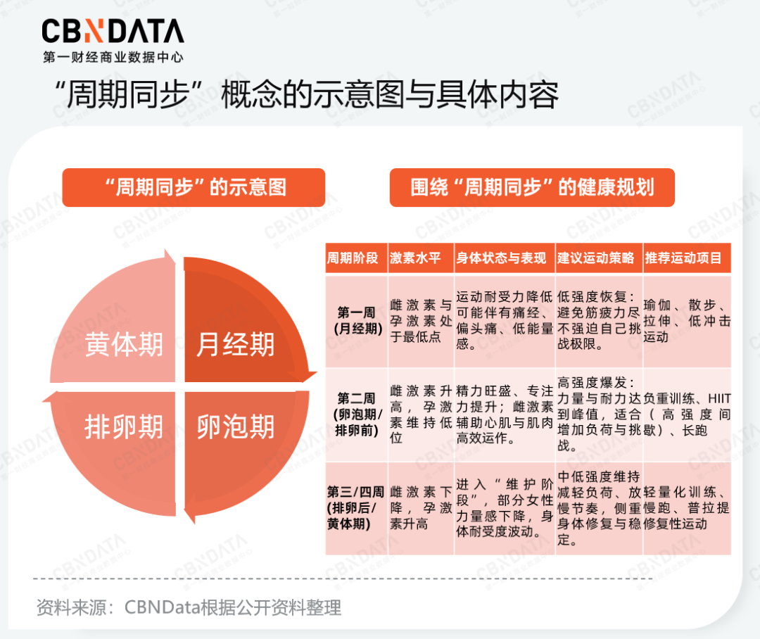 CBNData总结发现,周期同步的核心在于顺应激素波动的动态策略:经期处于激素低谷,宜进行低冲击恢复性运动;经后第二周雌激素攀升,是高强度训练(HIIT)与大重量撸铁的黄金期;排卵后的三、四周由孕激素主导,则应转入“维护模式”并减轻负荷。