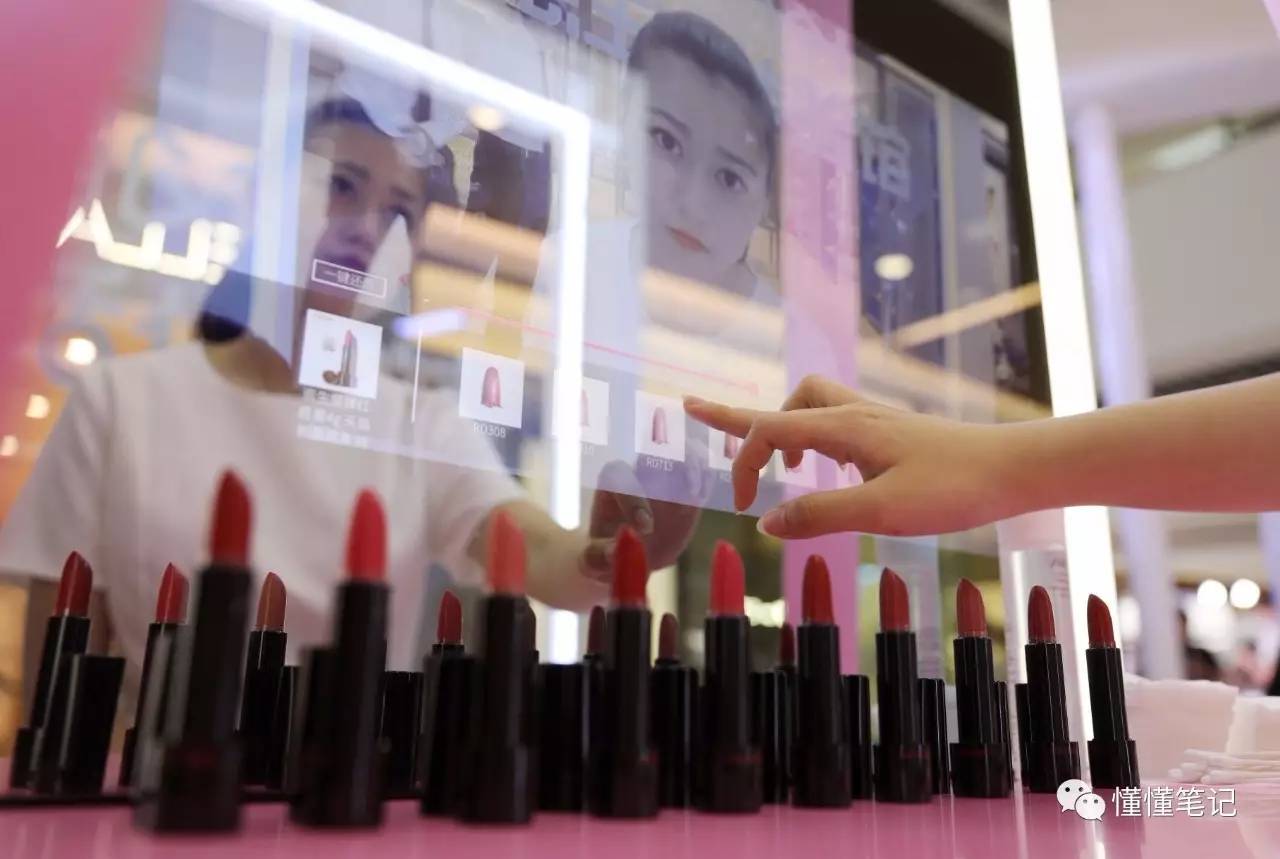 再比如,在试妆镜前,消费者只需要坐在镜子面前,就可以通过摄像头识别人脸进行虚拟口红试色,还可以直接扫码购买,不用担心试妆、卸妆的麻烦。