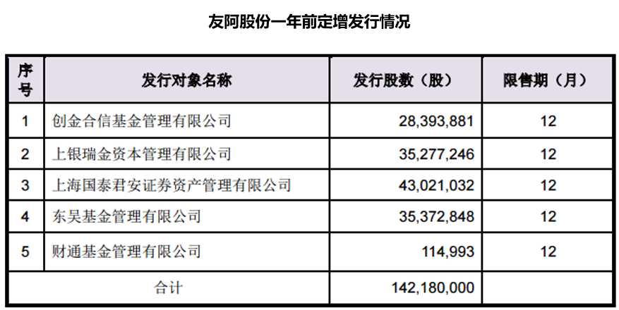 友阿股份本周解禁规模居第二,不过公司暂未发布限售股上市流通公告。根据一年前的非公开发行情况公告,友阿股份当时定增发行了1.42亿股,限售期12个月,发行价为10.46元/股。涉及股东5家,分别为创金合信基金、上海瑞金资本、国泰君安、东吴基金及财通基金。