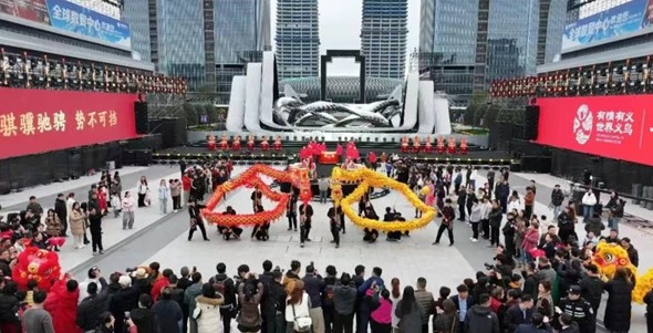 锣鼓喧天,龙狮齐舞,人潮如织,订单飞驰——2月28日正月十二,经过春节假期休整的义乌国际商贸城8万个商铺在全球期盼中开门迎客。