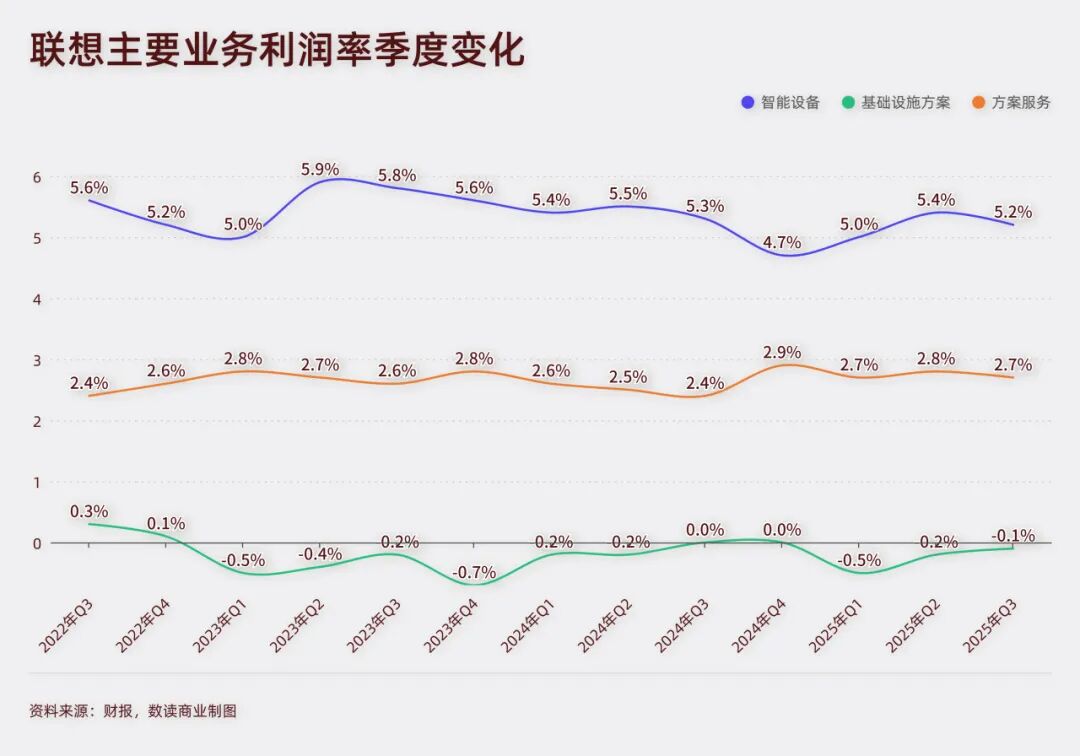 这样的投入力度,在面临残酷的AI竞争时,联想有心,可能也会无力。联想并没有太大的动力贸然投入到AI基础设施研究中,这可能进一步影响本就微薄的利润率。