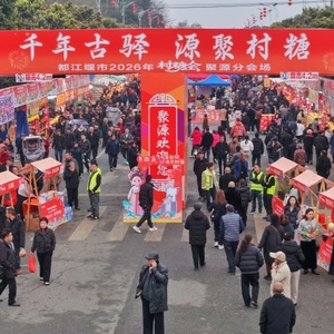 珍水万世堰·幸福安逸城——都江堰市2026年“村糖会”聚源分会场于3月2日在聚源镇迎祥社区聚兴大道盛大启幕。本次活动以“千年古驿·源聚村糖”为主题,精心策划主题市集、唐装NPC巡游、民俗非遗展演、美食荟萃、亲子乐园、惠民服务等多元场景,打造一场“可观、可感、可品、可玩”及“可交易”“可签约”的深度开放式文旅消费盛会。