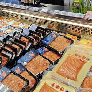 特别近两年,也是三文鱼在中国零售市场最风光的时候。各大平台主动把三文鱼当引流品来做,商超里刺身柜台成了标配,来自挪威、智利、澳大利亚、法国的各类产品把货架铺得越来越宽。
