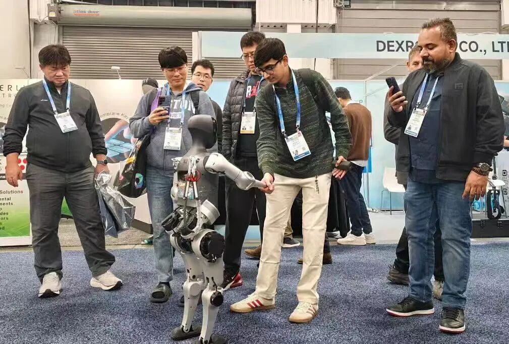 图片来源:松延动力微信公众号,图为“小顽童N2”与CES参展人员握手